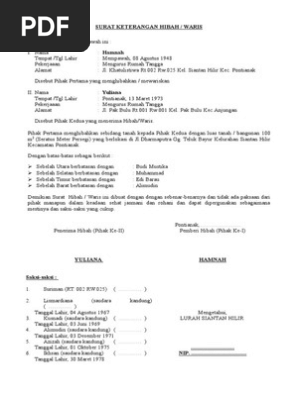 Surat hibah ini hampir mirip dengan surat wasiat yang telah kita. Proses hibah tanah pada orang lain sebaiknya dilakukan secara tertulis. Semoga surat ini dapat mengobati rasa kangen adinda kepada kakanda. Bagaimana caranya orang tua melakukan hibah kepada anaknya? Bahwa pihak pertama menyerahkan objek hibah kepada pihak kedua beserta sertifikatnya, dengan disaksikan oleh dua orang saksi dari.