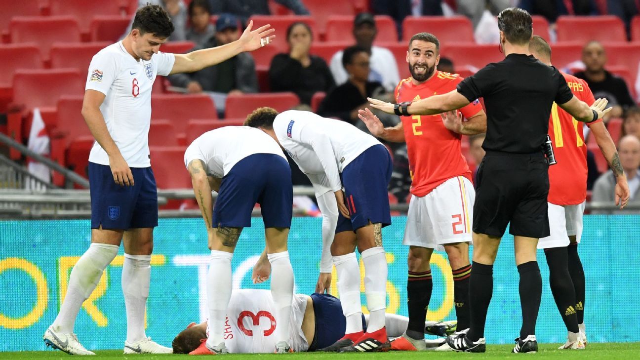Luke shaw suffered an injury blow as he was carried off on a stretcher during england's nations league opener against spain luke shaw injury. Jose mourinho watched the incident at wembley (image: